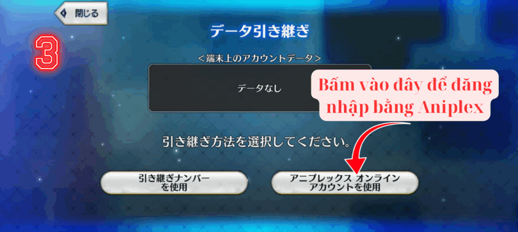 Đối với phiên bản Japan, bạn có thể đăng nhập bằng Transfer code hoặc Aniplex. Bài viết này mình chỉ hướng dẫn những thao tác để đăng nhập, liên kết Aniplex và gỡ liên kết Aniplex, nếu muốn hiểu thêm những câu chữ/cụm từ hiển thị trong màn hình game thì mọi người tự sử dụng Translate nhé!
