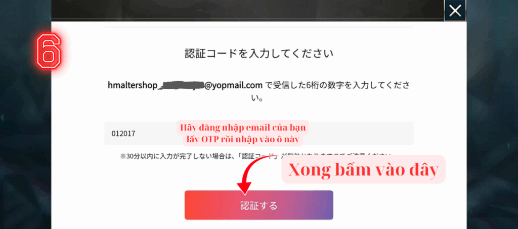 Sau đó đăng nhập mail tại https://yopmail.com/ để lấy OTP rồi điền vào ô bên dưới.