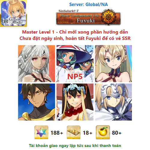 ⚠️ Vì tài khoản chưa hoàn tất chương đầu là Fuyuki, nên sẽ chưa có vé chọn SSR miễn phí, mọi người mua về chơi xong chương đầu sẽ có.