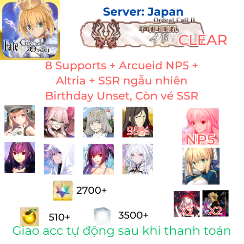 Các tài khoản FGO JP tại shop được hỗ trợ bằng công cụ (tool/mod) để vượt qua phần cốt truyện, giúp tích lũy thêm nhiều đá và vé cho người chơi.