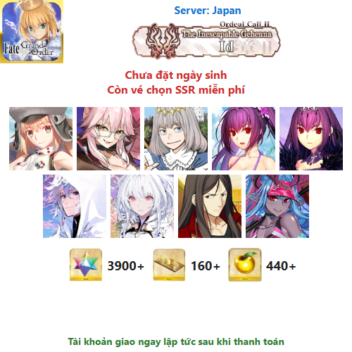Các tài khoản FGO JP tại shop được hỗ trợ bằng công cụ (tool/mod) để vượt qua phần cốt truyện, giúp tích lũy thêm nhiều đá và vé cho người chơi.