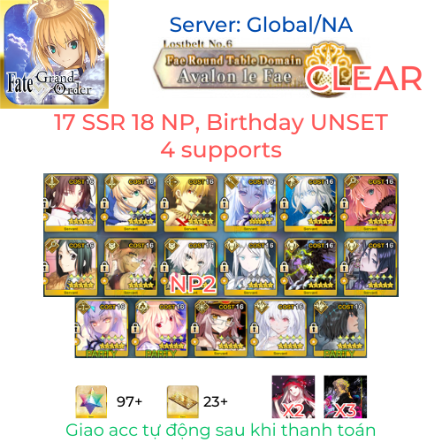 Tất cả các tài khoản FGO NA Endgame tại shop đều sử dụng tool/mod để vượt qua phần cốt truyện, nhằm tích lũy thêm nhiều đá và vé. Vì vậy, mọi người cân nhắc kỹ lưỡng những rủi ro có thể phát sinh trước khi quyết định mua tài khoản.