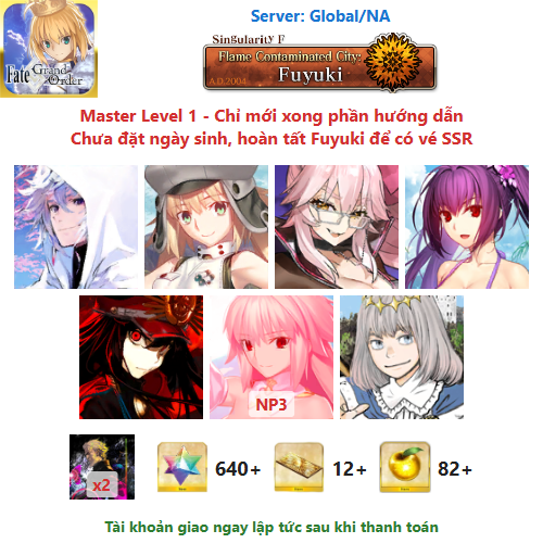 ⚠️ Vì tài khoản chưa hoàn tất chương đầu là Fuyuki, nên sẽ chưa có vé chọn SSR miễn phí, mọi người mua về chơi xong chương đầu sẽ có.