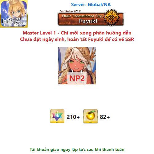 ⚠️ Vì tài khoản chưa hoàn tất chương đầu là Fuyuki, nên sẽ chưa có vé chọn SSR miễn phí, mọi người mua về chơi xong chương đầu sẽ có.