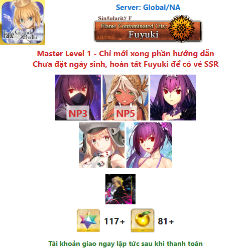 ⚠️ Vì tài khoản chưa hoàn tất chương đầu là Fuyuki, nên sẽ chưa có vé chọn SSR miễn phí, mọi người mua về chơi xong chương đầu sẽ có.
