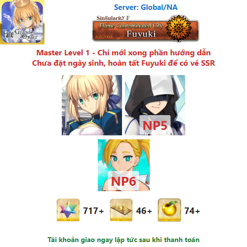 ⚠️ Vì tài khoản chưa hoàn tất chương đầu là Fuyuki, nên sẽ chưa có vé chọn SSR miễn phí, mọi người mua về chơi xong chương đầu sẽ có.
