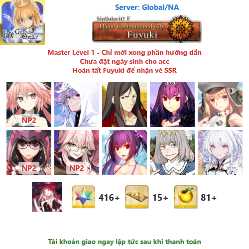 ⚠️ Vì tài khoản chưa hoàn tất chương đầu là Fuyuki, nên sẽ chưa có vé chọn SSR miễn phí, mọi người mua về chơi xong chương đầu sẽ có.