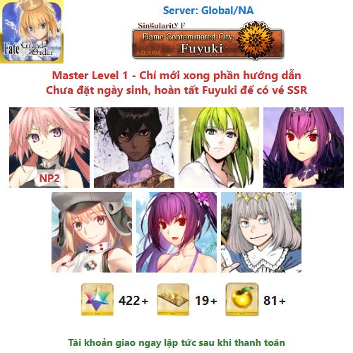 ⚠️ Vì tài khoản chưa hoàn tất chương đầu là Fuyuki, nên sẽ chưa có vé chọn SSR miễn phí, mọi người mua về chơi xong chương đầu sẽ có.