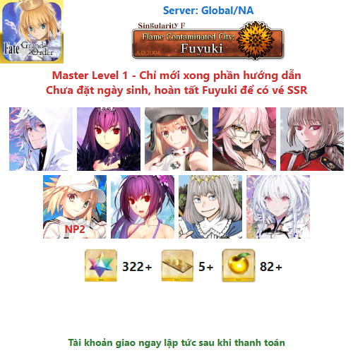 ⚠️ Vì tài khoản chưa hoàn tất chương đầu là Fuyuki, nên sẽ chưa có vé chọn SSR miễn phí, mọi người mua về chơi xong chương đầu sẽ có.
