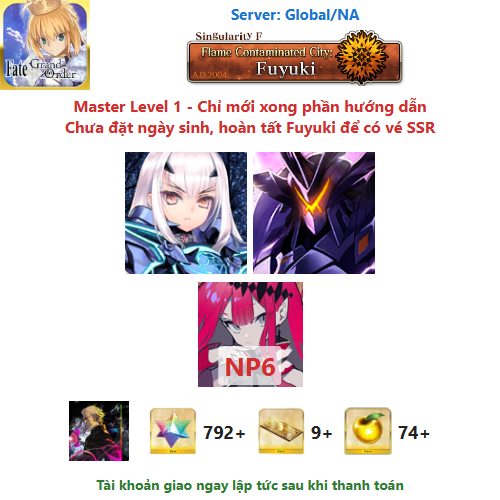 ⚠️ Vì tài khoản chưa hoàn tất chương đầu là Fuyuki, nên sẽ chưa có vé chọn SSR miễn phí, mọi người mua về chơi xong chương đầu sẽ có.