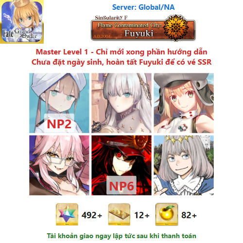 ⚠️ Vì tài khoản chưa hoàn tất chương đầu là Fuyuki, nên sẽ chưa có vé chọn SSR miễn phí, mọi người mua về chơi xong chương đầu sẽ có.