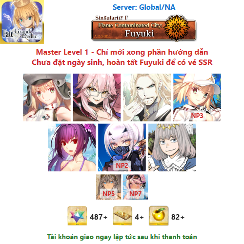 ⚠️ Vì tài khoản chưa hoàn tất chương đầu là Fuyuki, nên sẽ chưa có vé chọn SSR miễn phí, mọi người mua về chơi xong chương đầu sẽ có.
