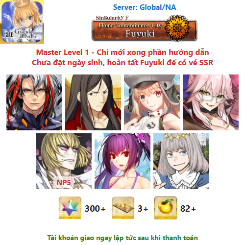 ⚠️ Vì tài khoản chưa hoàn tất chương đầu là Fuyuki, nên sẽ chưa có vé chọn SSR miễn phí, mọi người mua về chơi xong chương đầu sẽ có.