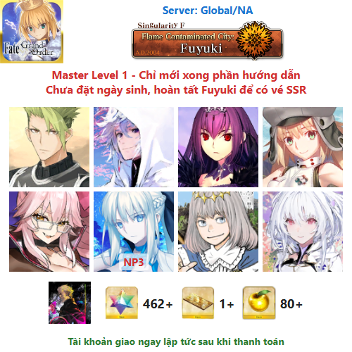 ⚠️ Vì tài khoản chưa hoàn tất chương đầu là Fuyuki, nên sẽ chưa có vé chọn SSR miễn phí, mọi người mua về chơi xong chương đầu sẽ có.
