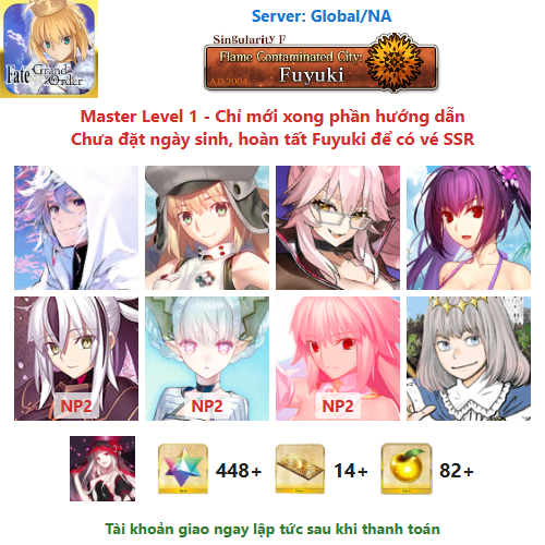 ⚠️ Vì tài khoản chưa hoàn tất chương đầu là Fuyuki, nên sẽ chưa có vé chọn SSR miễn phí, mọi người mua về chơi xong chương đầu sẽ có.