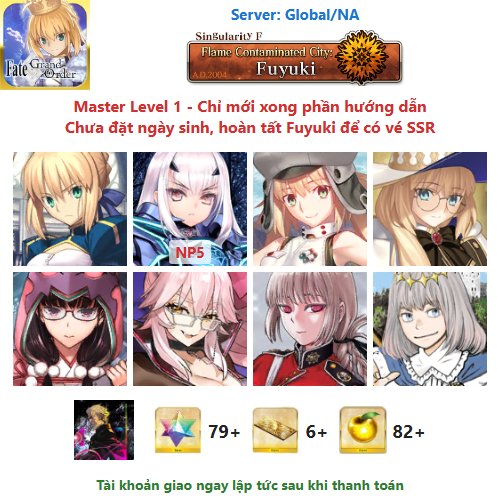 ⚠️ Vì tài khoản chưa hoàn tất chương đầu là Fuyuki, nên sẽ chưa có vé chọn SSR miễn phí, mọi người mua về chơi xong chương đầu sẽ có.