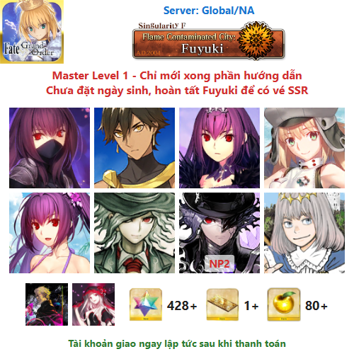 ⚠️ Vì tài khoản chưa hoàn tất chương đầu là Fuyuki, nên sẽ chưa có vé chọn SSR miễn phí, mọi người mua về chơi xong chương đầu sẽ có.