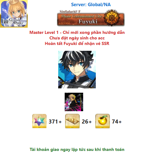 ⚠️ Vì tài khoản chưa hoàn tất chương đầu là Fuyuki, nên sẽ chưa có vé chọn SSR miễn phí, mọi người mua về chơi xong chương đầu sẽ có.