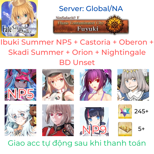 Trước khi mua tài khoản của shop, vui lòng lưu ý đến các điều khoản dịch vụ của trò chơi. Mặc dù các tài khoản FGO NA Starter của shop chưa từng bị khóa, nhưng luôn có khả năng trong tương lai nhà phát triển trò chơi sẽ thay đổi chính sách. Xin hãy cân nhắc kỹ lưỡng và đưa ra quyết định sáng suốt khi mua tài khoản, với việc hiểu rõ những rủi ro có thể xảy ra. Nếu bạn có bất kỳ câu hỏi nào, vui lòng nhắn tin cho shop.