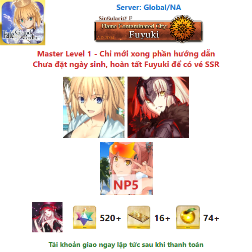 ⚠️ Vì tài khoản chưa hoàn tất chương đầu là Fuyuki, nên sẽ chưa có vé chọn SSR miễn phí, mọi người mua về chơi xong chương đầu sẽ có.