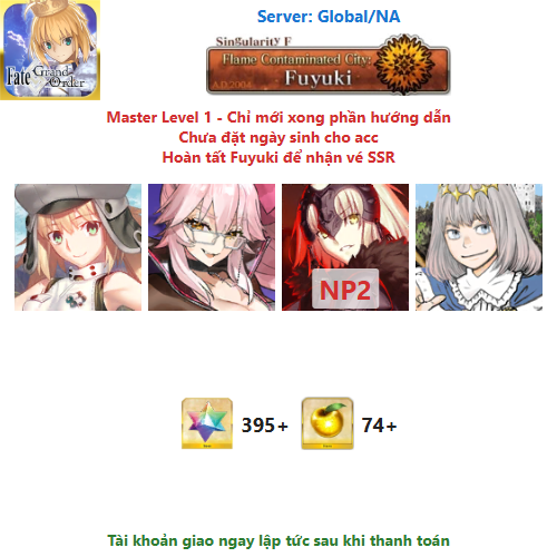 ⚠️ Vì tài khoản chưa hoàn tất chương đầu là Fuyuki, nên sẽ chưa có vé chọn SSR miễn phí, mọi người mua về chơi xong chương đầu sẽ có.