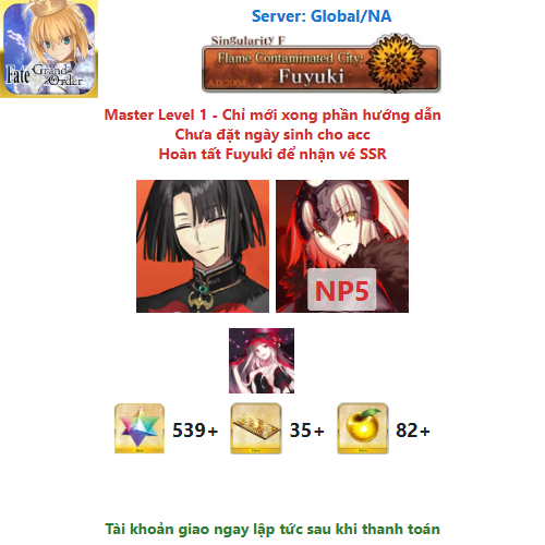 ⚠️ Vì tài khoản chưa hoàn tất chương đầu là Fuyuki, nên sẽ chưa có vé chọn SSR miễn phí, mọi người mua về chơi xong chương đầu sẽ có.