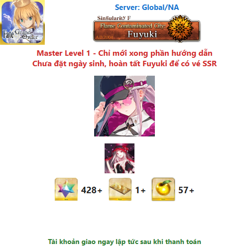 ⚠️ Vì tài khoản chưa hoàn tất chương đầu là Fuyuki, nên sẽ chưa có vé chọn SSR miễn phí, mọi người mua về chơi xong chương đầu sẽ có.