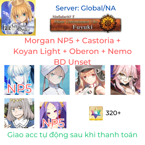 Trước khi mua tài khoản của shop, vui lòng lưu ý đến các điều khoản dịch vụ của trò chơi. Mặc dù các tài khoản FGO NA Starter của shop chưa từng bị khóa, nhưng luôn có khả năng trong tương lai nhà phát triển trò chơi sẽ thay đổi chính sách. Xin hãy cân nhắc kỹ lưỡng và đưa ra quyết định sáng suốt khi mua tài khoản, với việc hiểu rõ những rủi ro có thể xảy ra. Nếu bạn có bất kỳ câu hỏi nào, vui lòng nhắn tin cho shop.