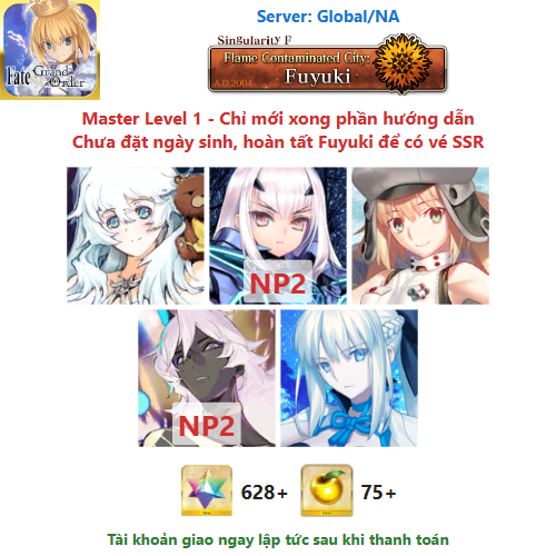 ⚠️ Vì tài khoản chưa hoàn tất chương đầu là Fuyuki, nên sẽ chưa có vé chọn SSR miễn phí, mọi người mua về chơi xong chương đầu sẽ có.