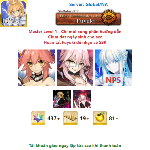 ⚠️ Vì tài khoản chưa hoàn tất chương đầu là Fuyuki, nên sẽ chưa có vé chọn SSR miễn phí, mọi người mua về chơi xong chương đầu sẽ có.