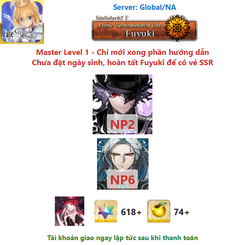 ⚠️ Vì tài khoản chưa hoàn tất chương đầu là Fuyuki, nên sẽ chưa có vé chọn SSR miễn phí, mọi người mua về chơi xong chương đầu sẽ có.