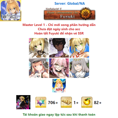 ⚠️ Vì tài khoản chưa hoàn tất chương đầu là Fuyuki, nên sẽ chưa có vé chọn SSR miễn phí, mọi người mua về chơi xong chương đầu sẽ có.