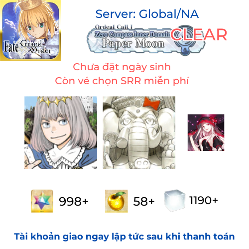 Tất cả các tài khoản FGO NA Endgame tại shop đều sử dụng tool/mod để vượt qua phần cốt truyện, nhằm tích lũy thêm nhiều đá và vé. Vì vậy, mọi người cân nhắc kỹ lưỡng những rủi ro có thể phát sinh trước khi quyết định mua tài khoản.