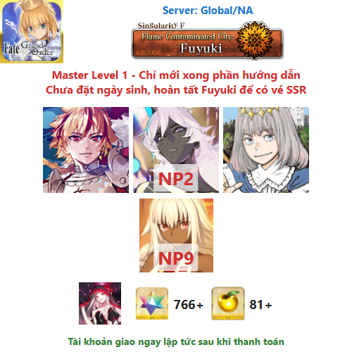 ⚠️ Vì tài khoản chưa hoàn tất chương đầu là Fuyuki, nên sẽ chưa có vé chọn SSR miễn phí, mọi người mua về chơi xong chương đầu sẽ có.
