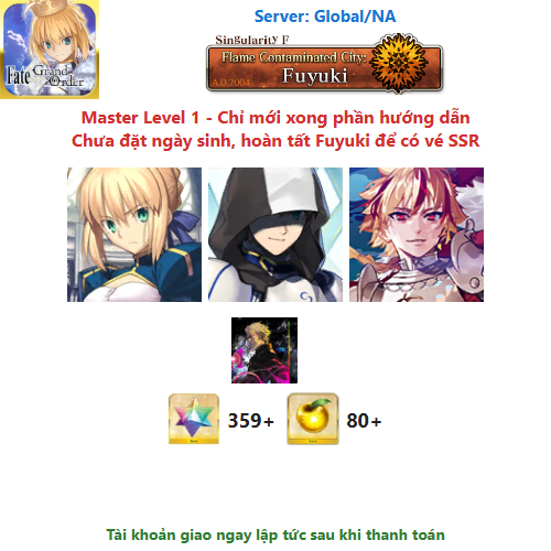 ⚠️ Vì tài khoản chưa hoàn tất chương đầu là Fuyuki, nên sẽ chưa có vé chọn SSR miễn phí, mọi người mua về chơi xong chương đầu sẽ có.
