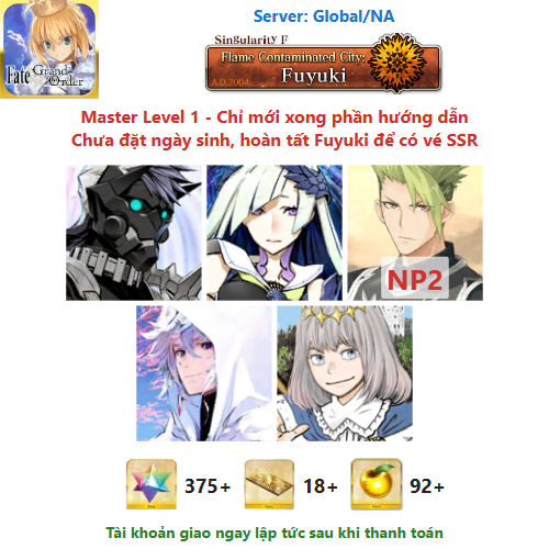 ⚠️ Vì tài khoản chưa hoàn tất chương đầu là Fuyuki, nên sẽ chưa có vé chọn SSR miễn phí, mọi người mua về chơi xong chương đầu sẽ có.