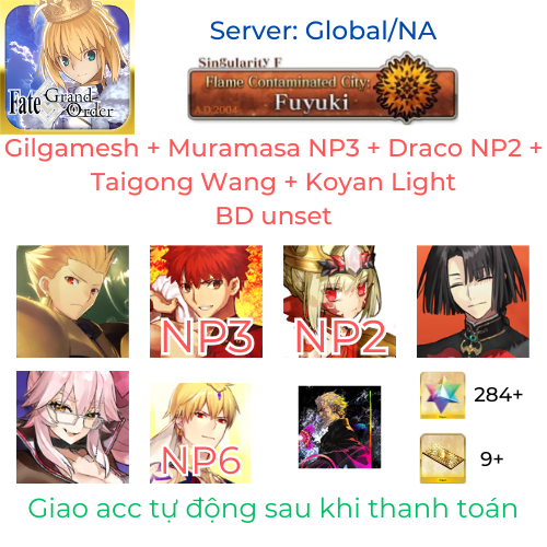 [#GIL129] [NA] [Starter] Gilgamesh + Muramasa NP3 + Draco NP2 + Taigong Wang + Koyan Light